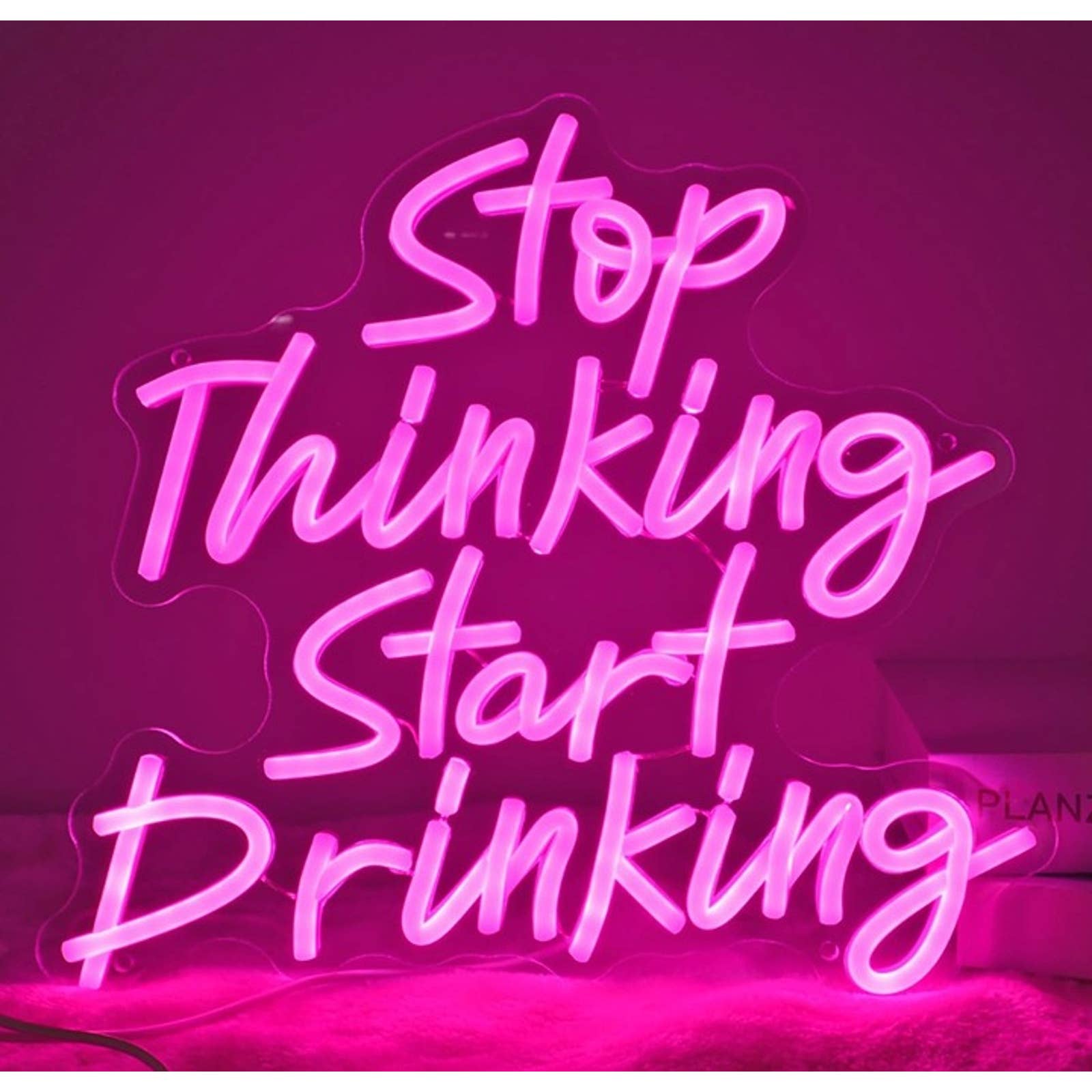 Bold Message: This LED night light boldly declares, "Stop Thinking Start Drinking" in vivid pink, setting the party mood instantly.