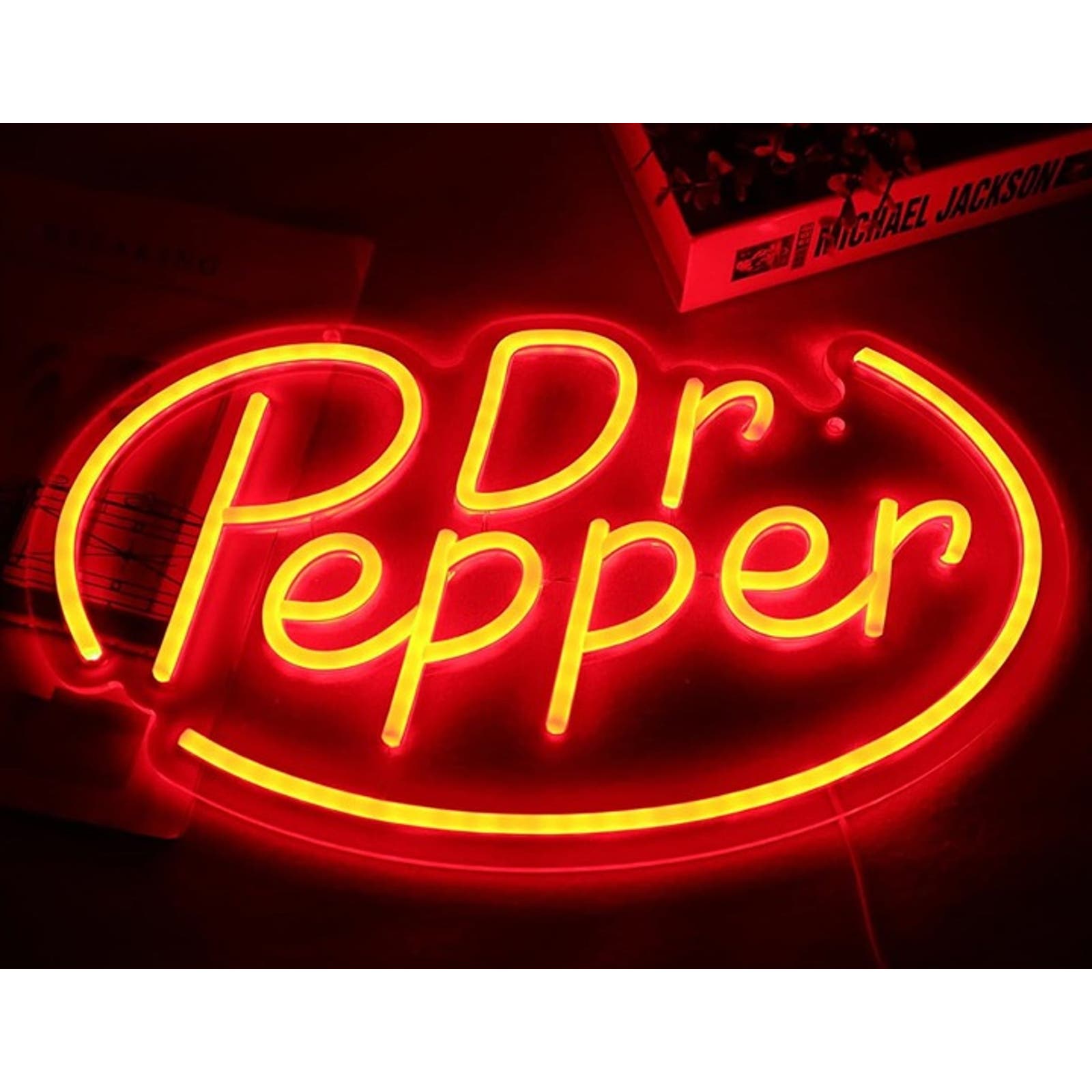 Vivid Bright Warm Red Dr. Pepper Soda Drink LED Night Light Room Wall Decor