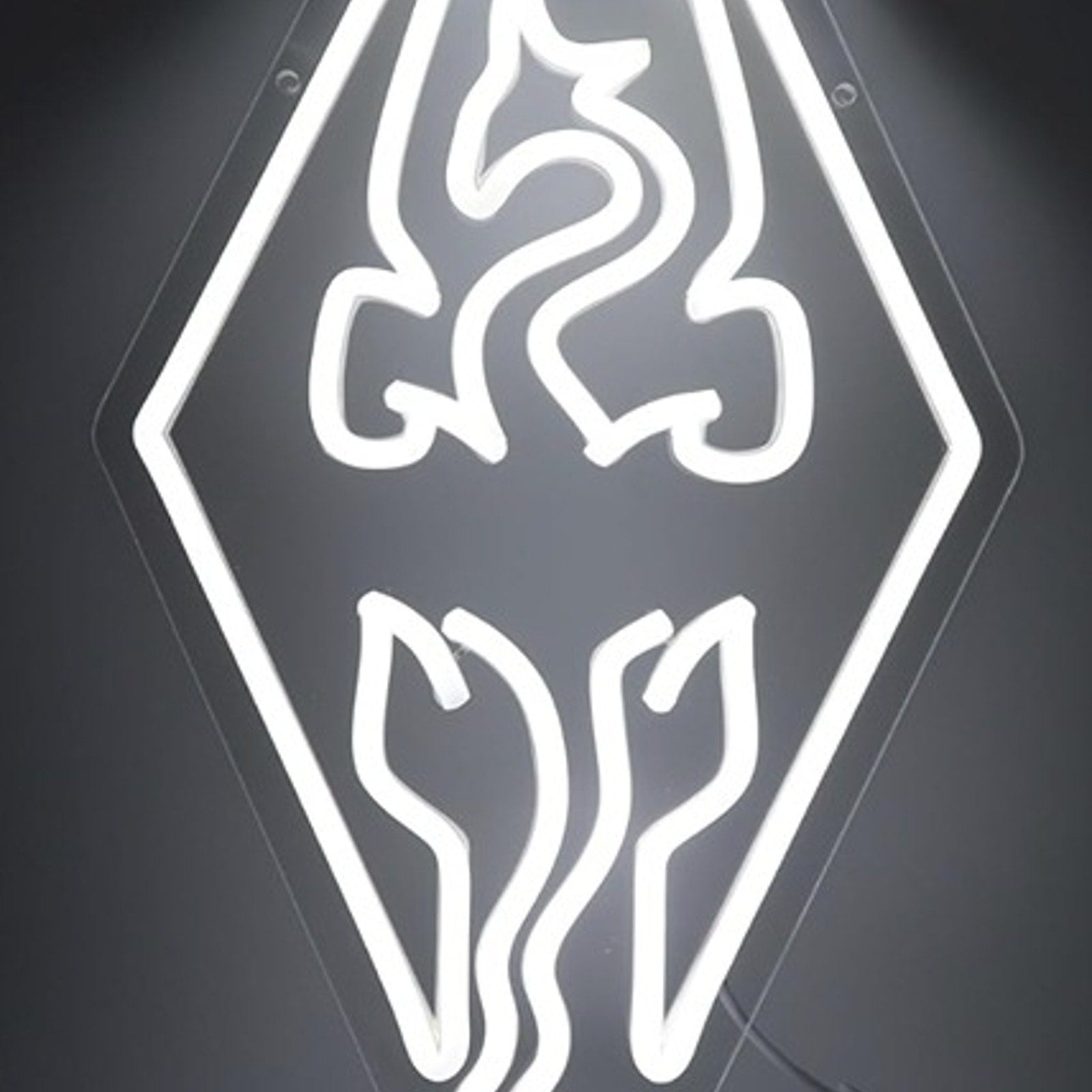 Embark on epic quests and unlock hidden treasures with the Vivid Bright White Diamond Dragon Skyrim Symbol LED Night Light! Inspired by the iconic symbol from the legendary video game, Skyrim, this captivating night light brings the magic of Tamriel into your home. The intricate diamond-shaped design, featuring the fearsome dragon silhouette, adds a touch of fantasy and adventure to any game room or den.