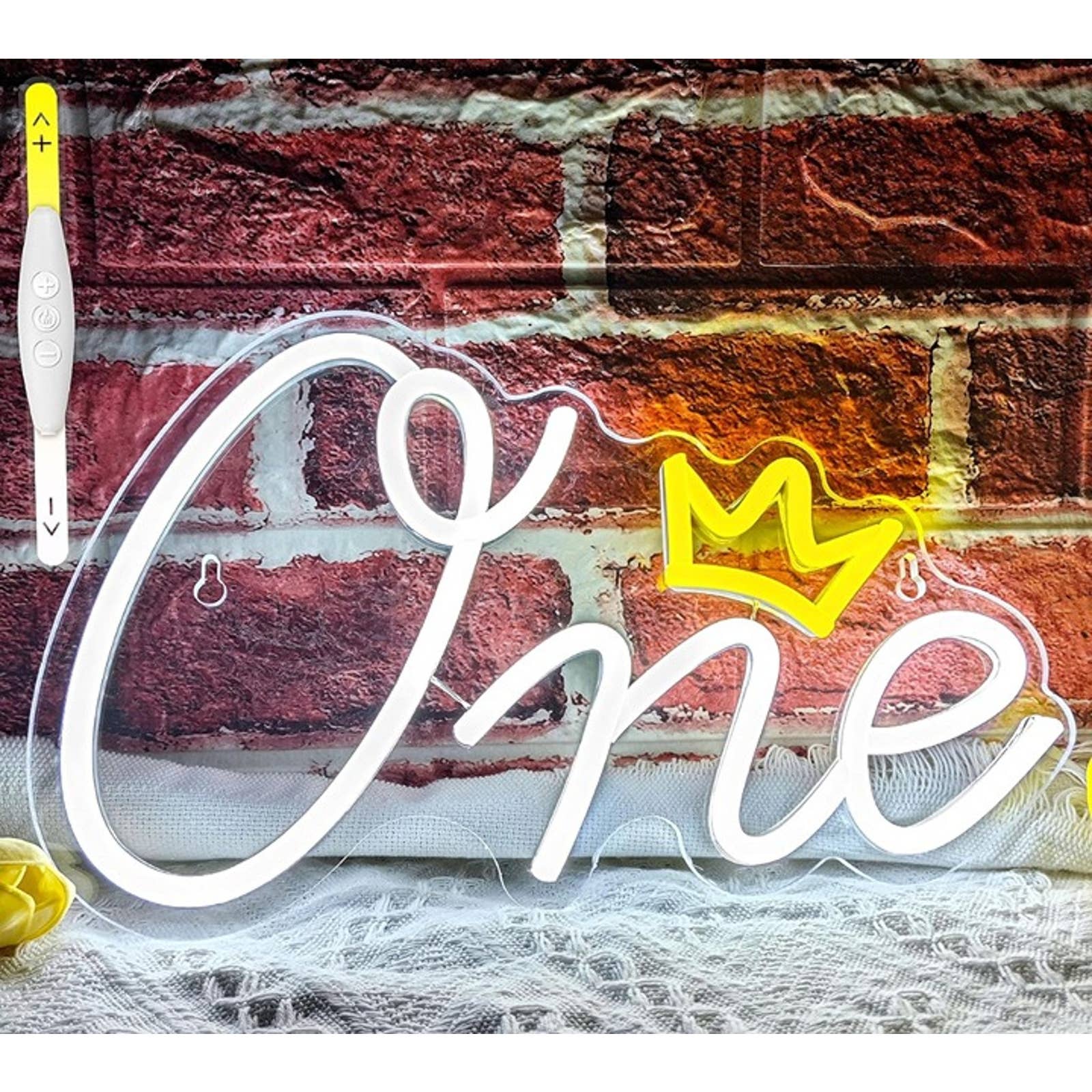Description: Add a regal touch to your birthday celebration with the "Crown One" LED Night Light. This vibrant white and yellow crown-shaped light brings a royal ambiance to your party.