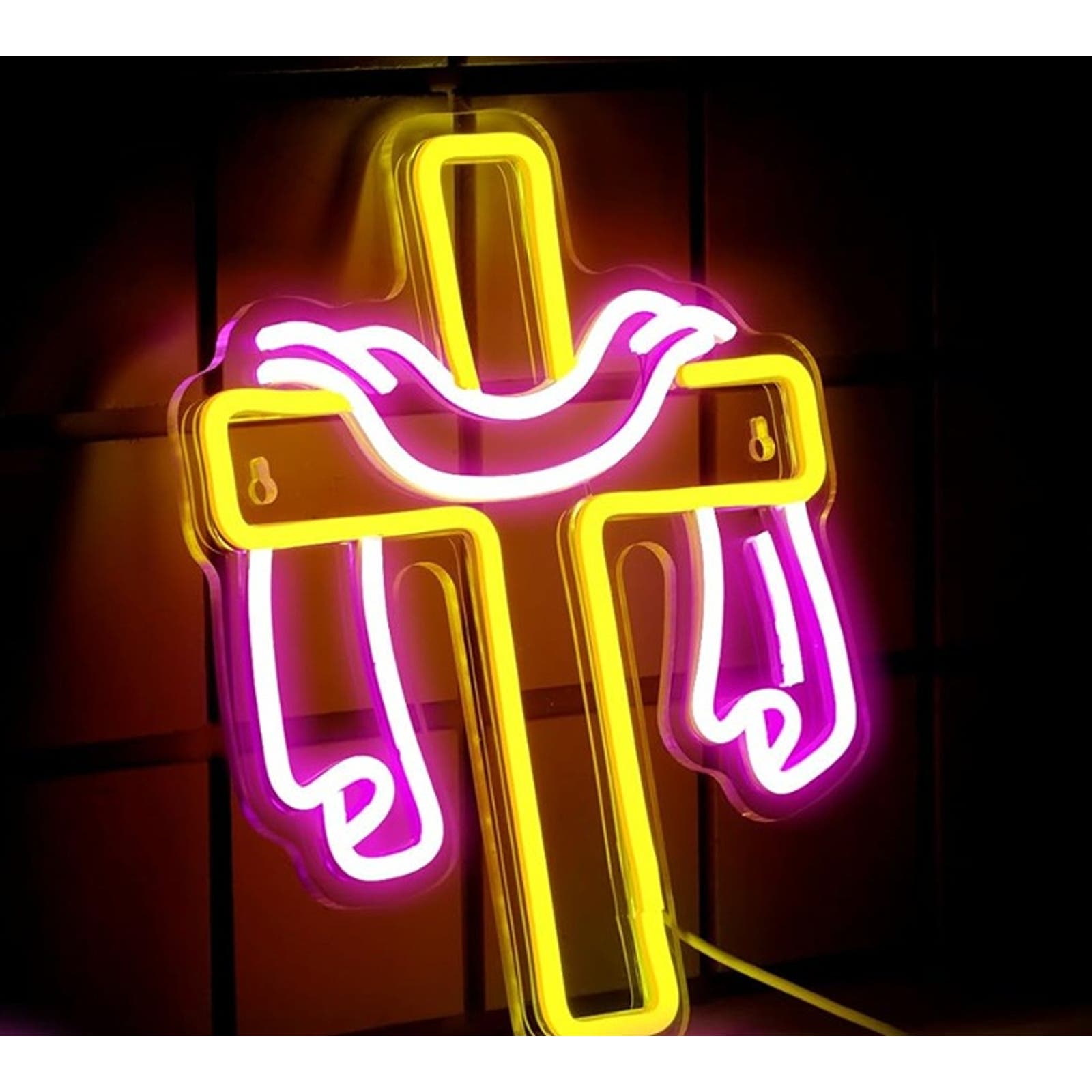 Vivid Bright Yellow Cross and Pink Cloth LED Night Light Christian Decoration