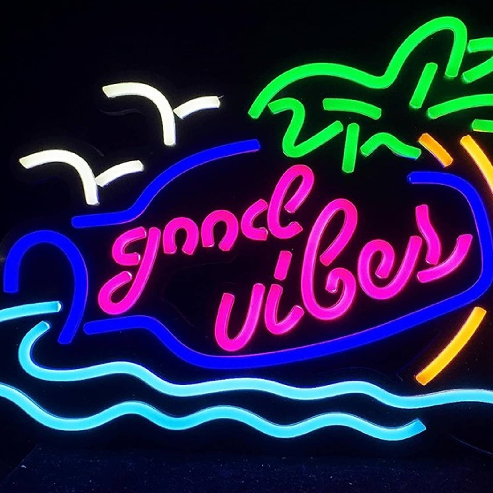 Hey, tropical dreamers! Illuminate with Vivid Fun Bright 'Good Vibes' LED Night Light. Not just lighting – embodiment of positivity! Let vibrant light and tropical design add paradise touch.